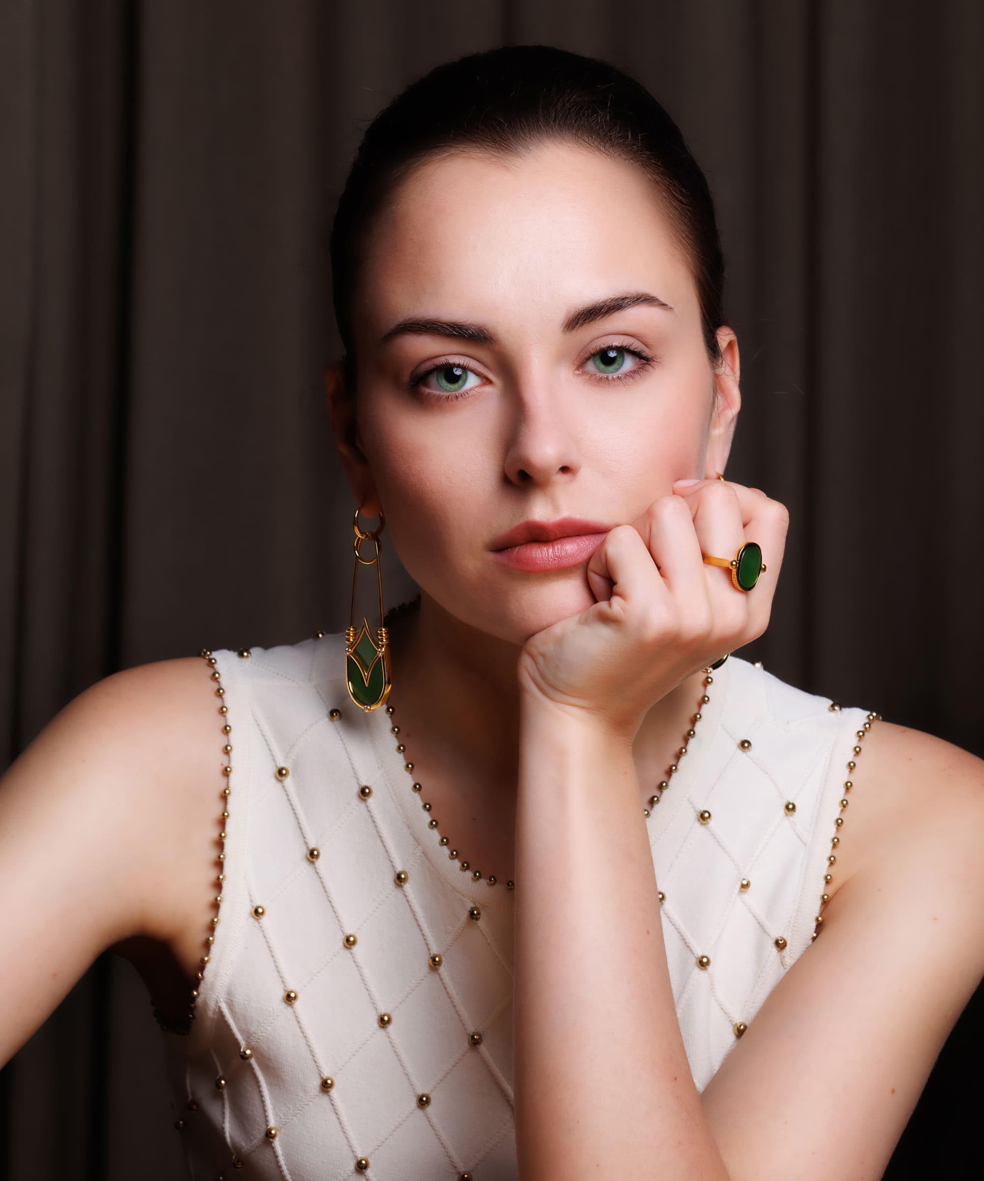 Каждое украшение уникально: естественные вкрапления и узоры на каждом камне уникальны и отличаются в каждом украшении по расположению и рисунку.