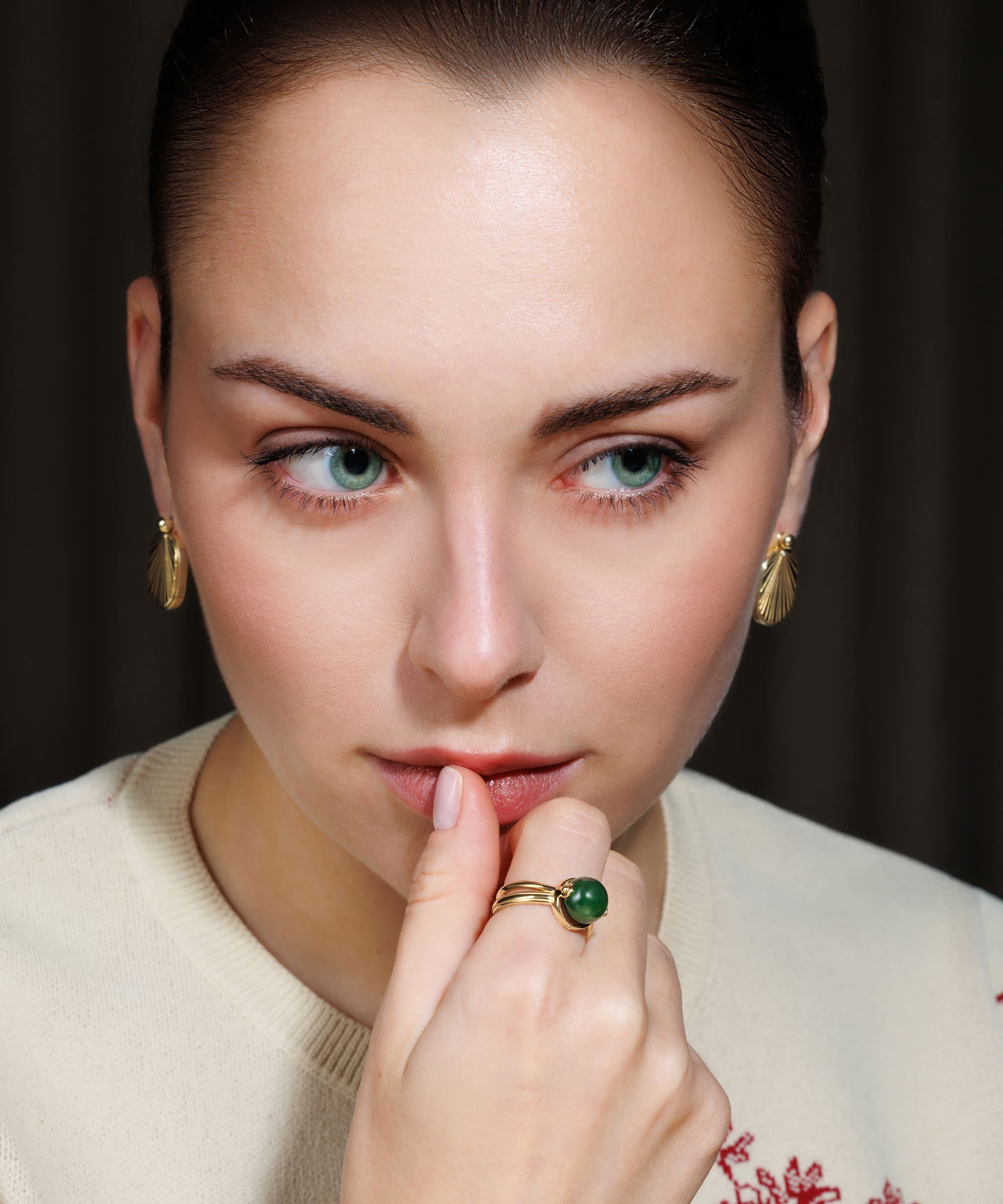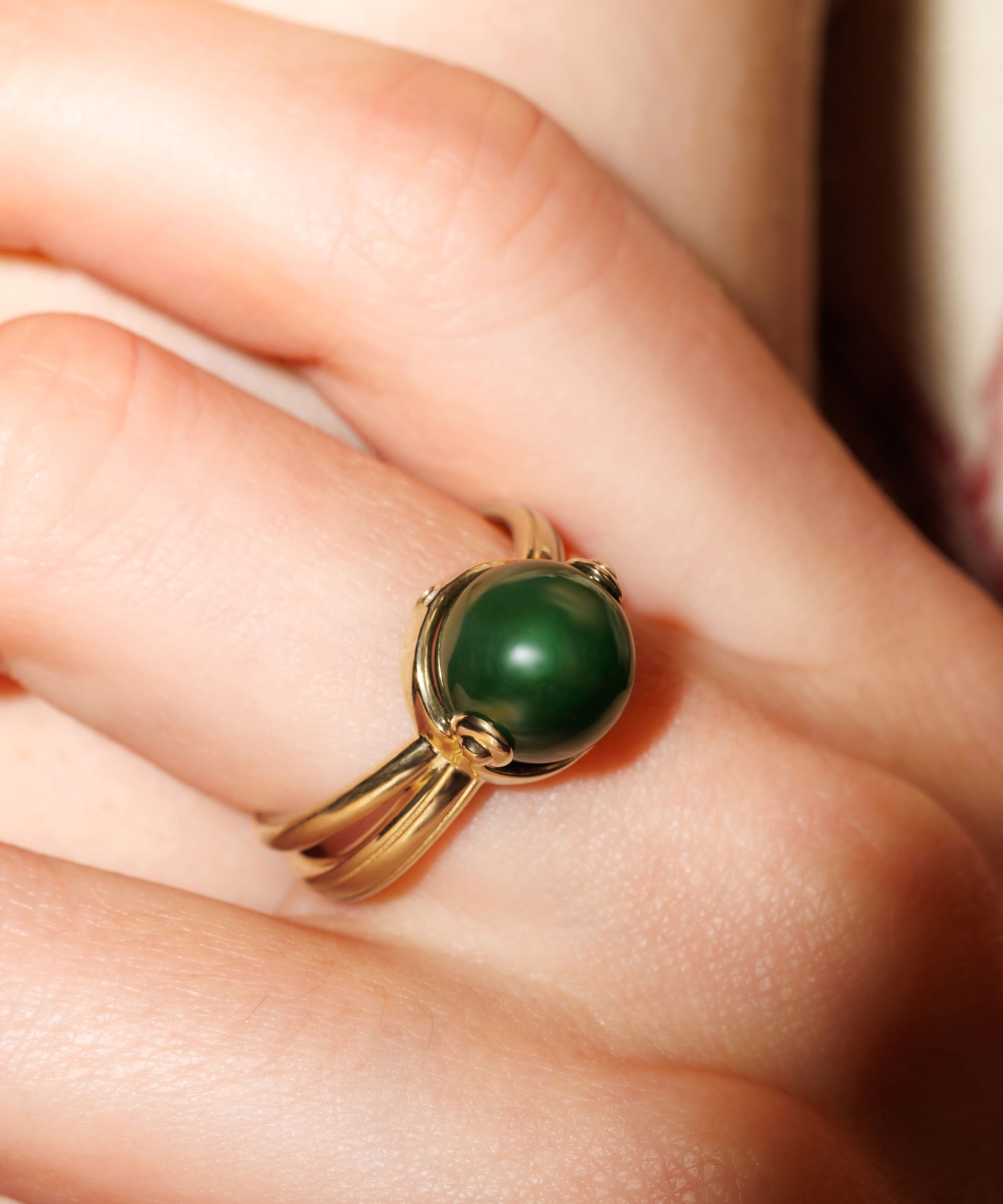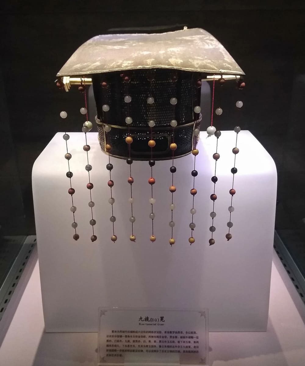 Кольцо вдохновлено мяньгуань. Это головные уборы с подвесками спереди и сзади, которые носили императоры в Древнем Китае.