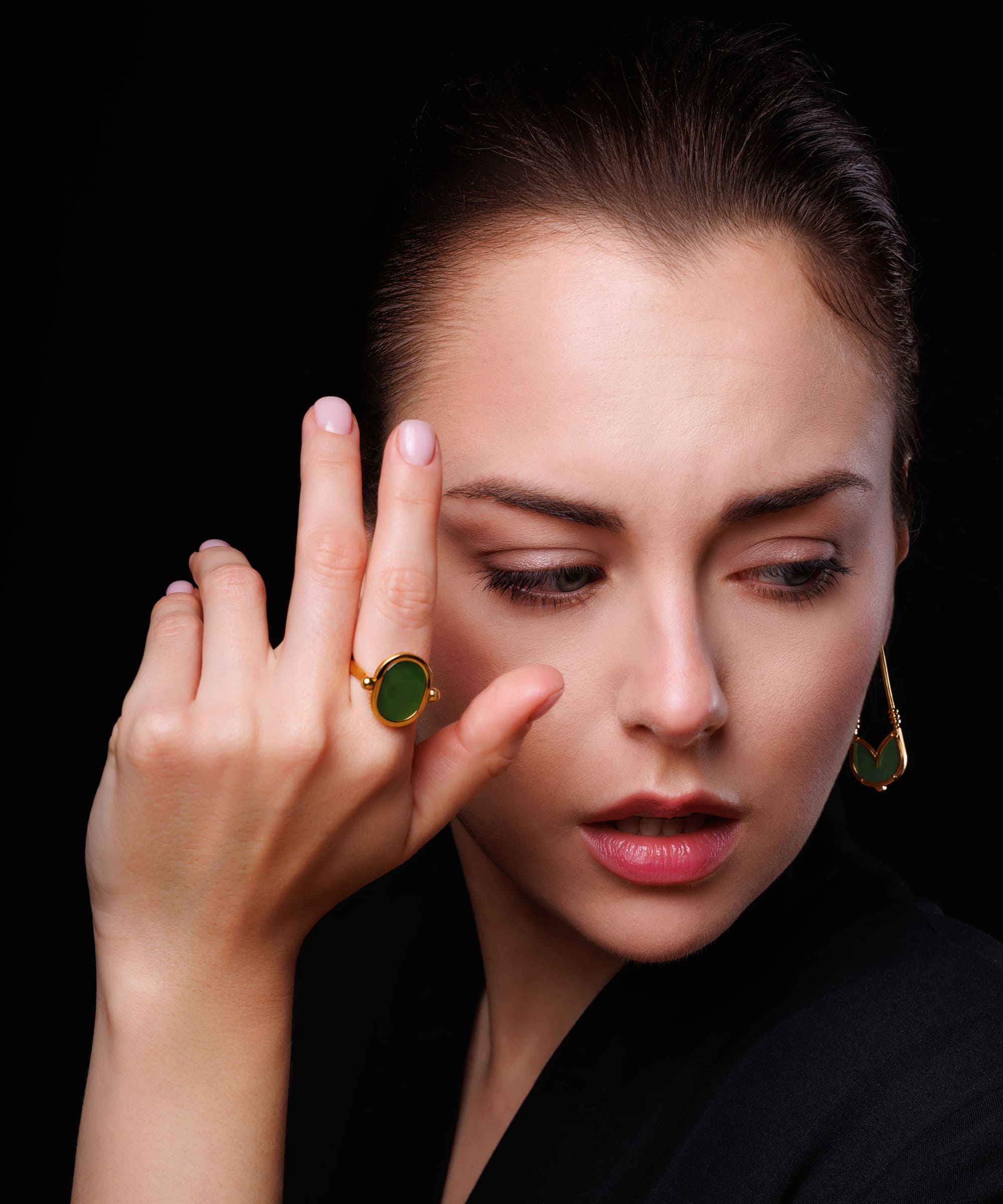 Когда камень повернут внутрь, нефрит касается кожи и раскрывает свою энергию — вы, вдыхаете, набираетесь сил.